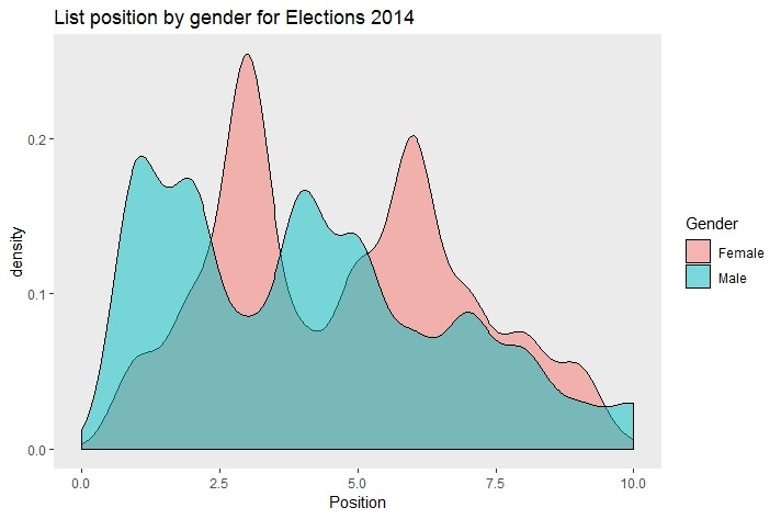 Ditinjau dari posisi nomor urut di kertas suara, elektabilitas perempuan anjlok seiring dengan semakin besarnya nomor urut, meskipun secara teori, sistem daftar-terbuka memungkinkan orang untuk terpilih dari nomor urut mana pun.. Namun,terbukti bahwa berada di nomor urut teratas akan sangat mempengaruhi peluang untuk terpilih, dan caleg laki-laki mendominasi nomor urut 1. Secara statistik, semakin jauh ke bawah di daftar caleg maka peluang untuk menang bagi caleg perempuan menyusut 63,5 persen. (Secara keseluruhan, caleg laki-laki dan perempuan, elektabilitasnya akan merosot 52.3 persen bila dicalonkan dari nomor urut yang semakin ke bawah.) Salah satu penyebabnya adalah adanya anggapan dari pemilih bahwa caleg di posisi 1 merupakan caleg yang paling kompeten dibandingkan caleg dengan nomor urut di bawahnya. Namun, ‘ini juga soal kenyamanan’, ujar seorang anggota legislatif dari Partai Demokrasi Indonesia-Perjuangan (PDI-P) yang menilai bahwa ‘akan lebih memudahkan buat pemilih untuk mencoblos caleg yang berada di posisi teratas di kertas suara.’
